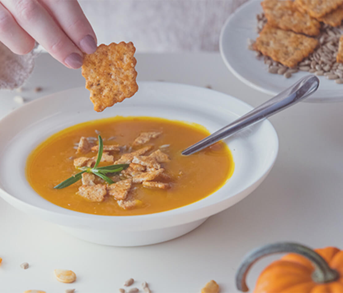 Faites cuire le potiron dans du lait. Mixez-le en ajoutant de la crème fraîche pour obtenir une texture onctueuse. Faites rissoler dans une poêle des petits cubes de chorizo et petits croûtons de pain que vous poserez sur le dessus de l’assiette. Oh la bonne soupe !
