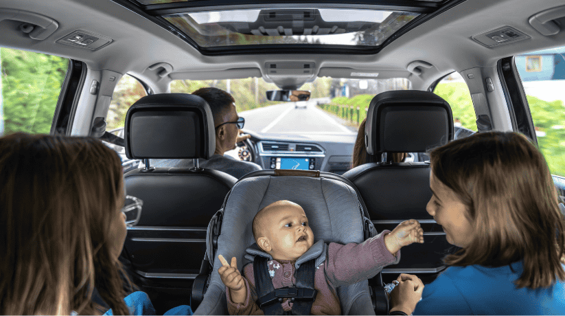 On découpe le trajet en petites étapes plutôt que de parler de l’arrivée finale. On annonce la prochaine pause, le prochain arrêt, le prochain moment-clé. On lance un jeu d’observation, une chanson, une devinette… et on s’accroche. Pour les tous petits on met de la musique, on accroche des jouets d’éveil autour de lui.